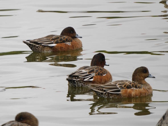 ヒドリガモ、カルガモ、オナガガモ(辰巳池) 2025.10.31