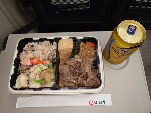 あっちっち 城崎名物 かにめしとすきやき弁当、ザ・プレミアム・モルツ生ビール