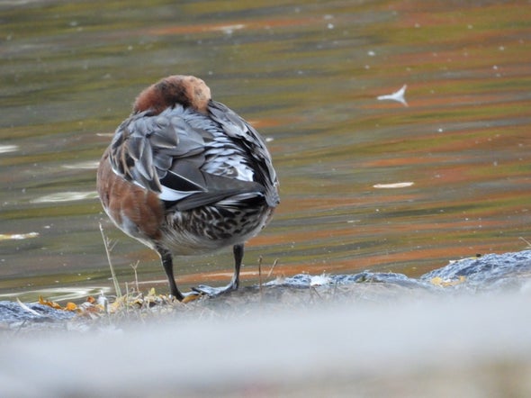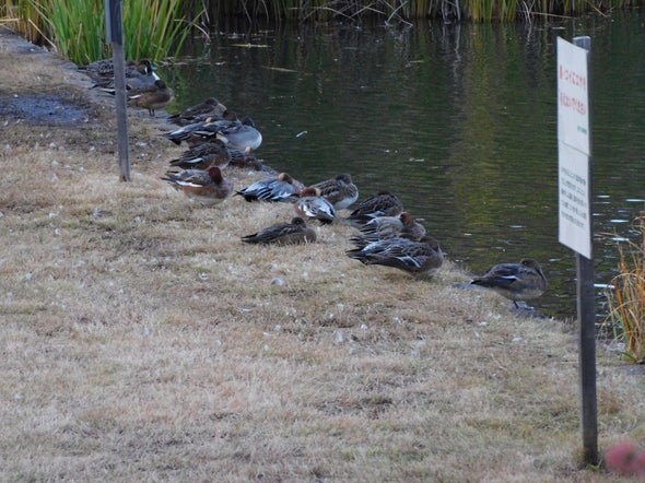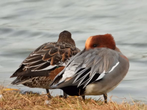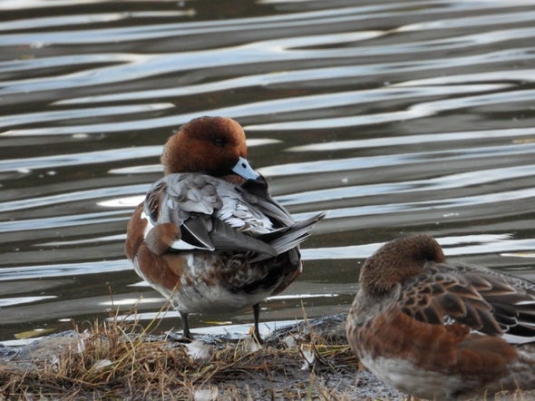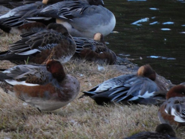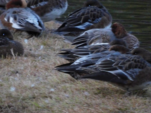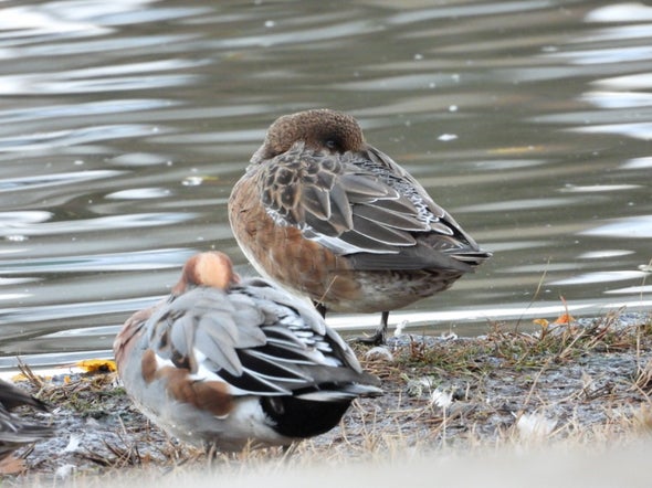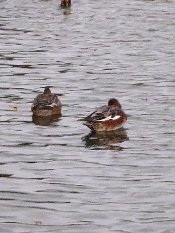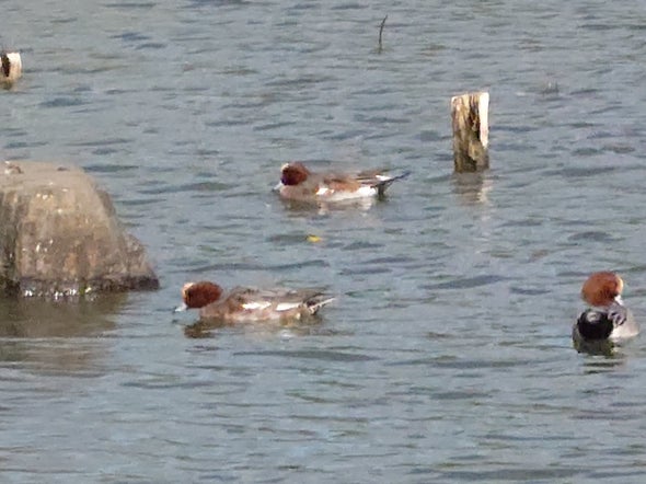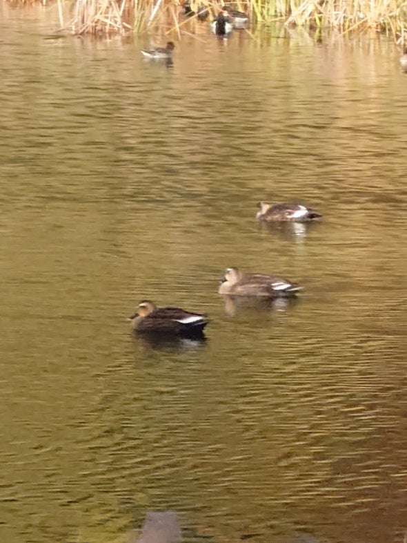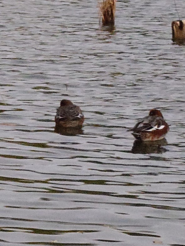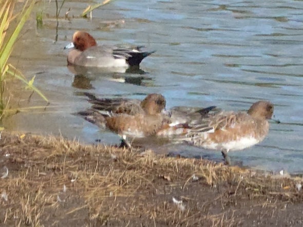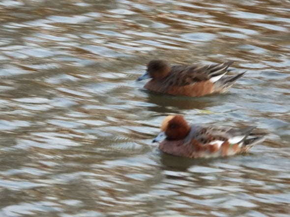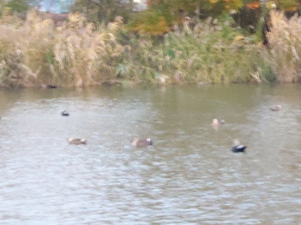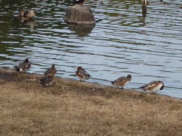 ヒドリガモとカルガモ 辰巳池 2025.11.6