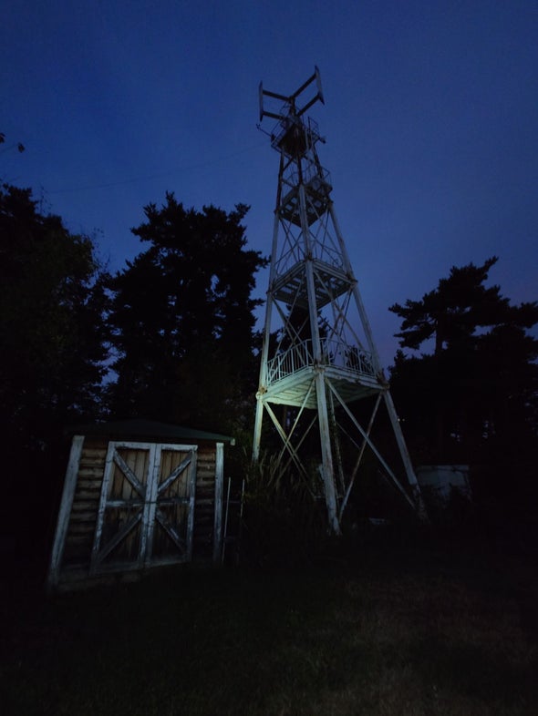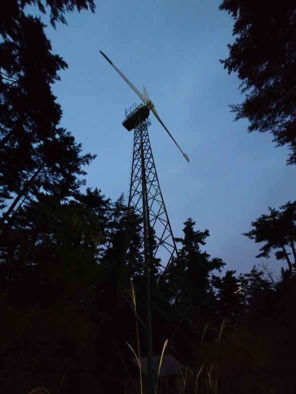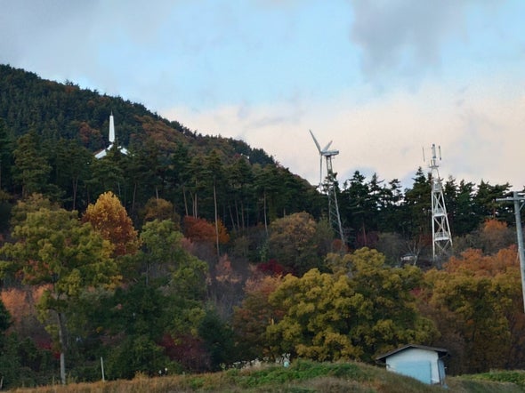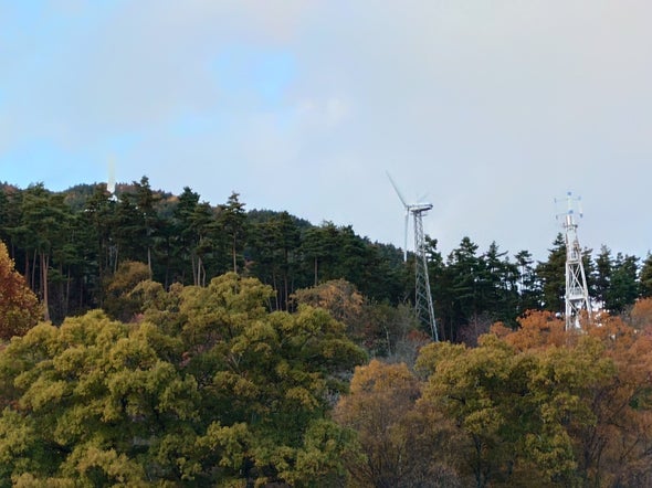 若槻大池の横から三登山林道を歩き、スーパー地形の地図を頼りにして、三登山の麓にある風車まで辿り着き、風車を撮影した。