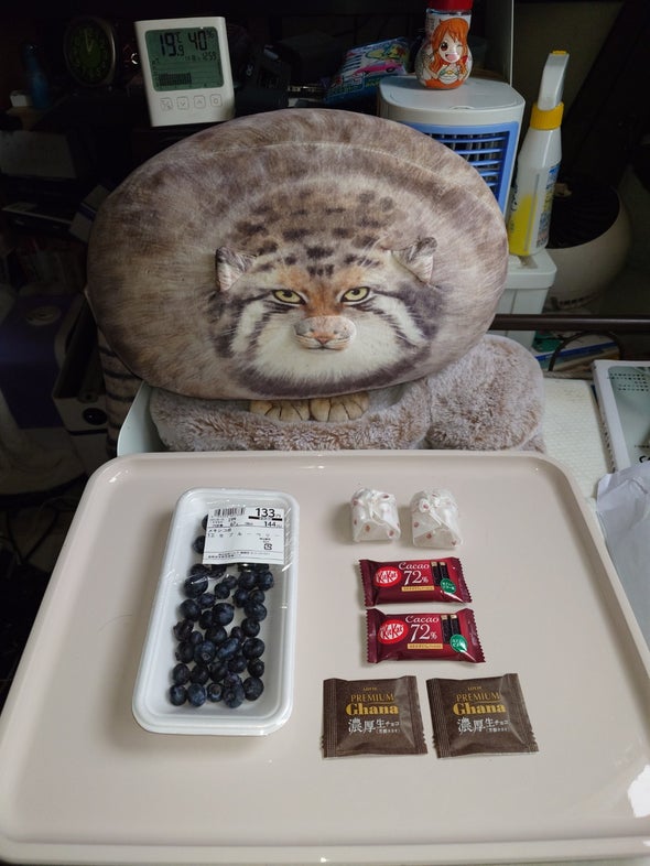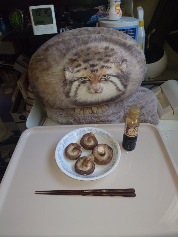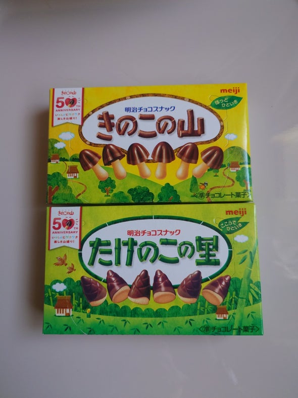 昼食:きのこの山、たけのこの里、レンチン椎茸