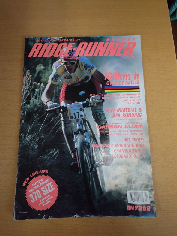 35年前の電動アシストが付いていないRIDGE-RUNNERのパンフレットを見せてもらった。