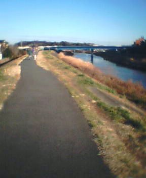 1:鶴見川青少年サイクリングコース。鴨池人道橋を通り過ぎたところ。