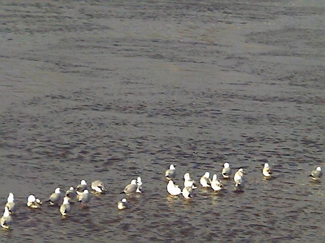 12:アヒル、アイガモ、オナガガモ、ユリカモメ。