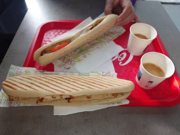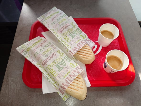 どかっと満足パン(ベーコンピザ)、ミルクココア