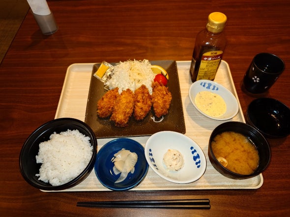 夕食:大粒牡蠣フライ御膳4個 (夢庵 長野若槻店)