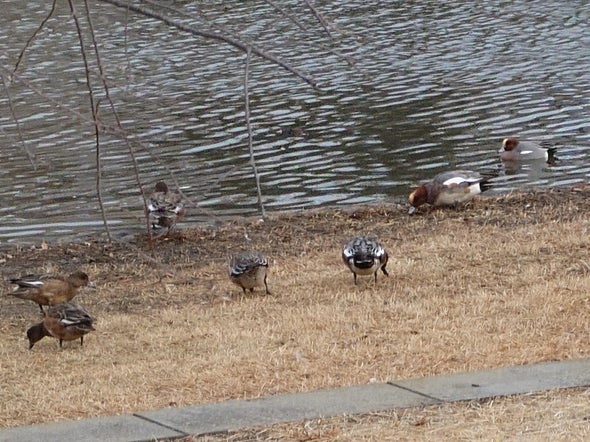 カルガモとヒドリガモ 辰巳池 2025.12.3