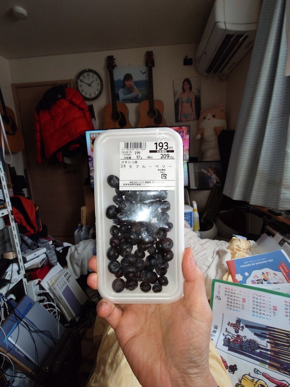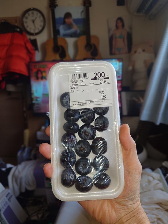 昼食:天乃屋の歌舞伎揚、生ブルーベリー