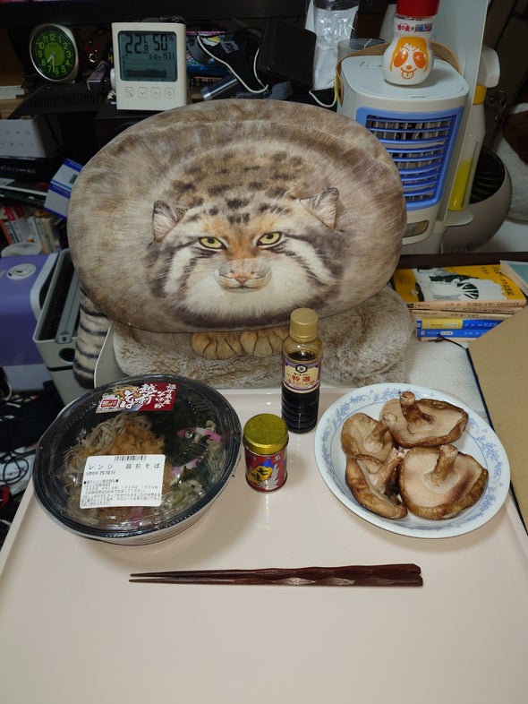 夕食:鴨南蛮そば、舞茸天ぷら、和歌山県産活〆真鯛刺身、おつまみスパイシー胡瓜
