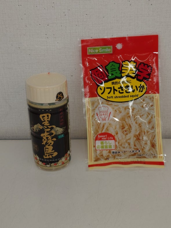 昼食:おつまみまぐろ、天乃屋の歌舞伎揚、生ブルーベリー