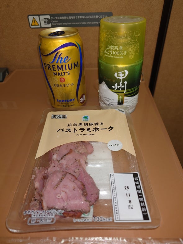 ジューシーソース焼そば、枝豆、昆布仕立てのセロリサラダ、ザ・プレミアム・モルツ生ビール(250ml)