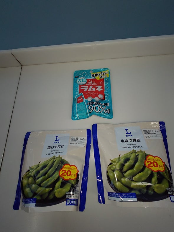 ローソン 長野田中店でラムネと塩ゆで枝豆を買った。