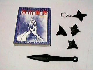 59:お土産。「万川集海」、「苦無(くない)」、「まきびし」、手裏剣キーホルダー。
