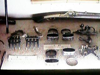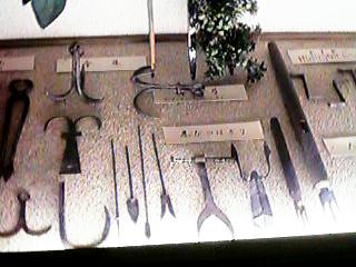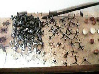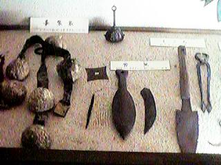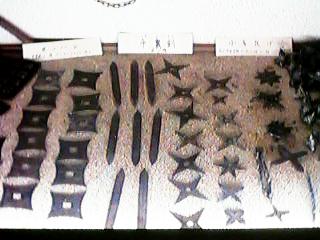 18:手裏剣。左側の四角い手裏剣は戸隠流の銛盤(せんばん)と呼ばれるもの。