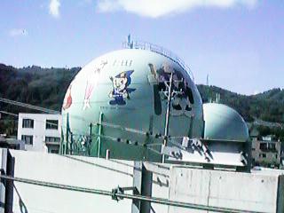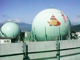 34:上田駅の南側にあるガスタンクに忍者の絵が描かれていた。