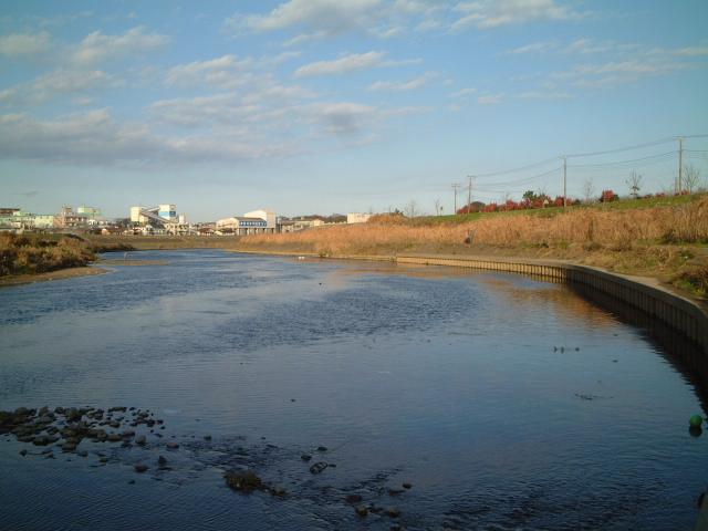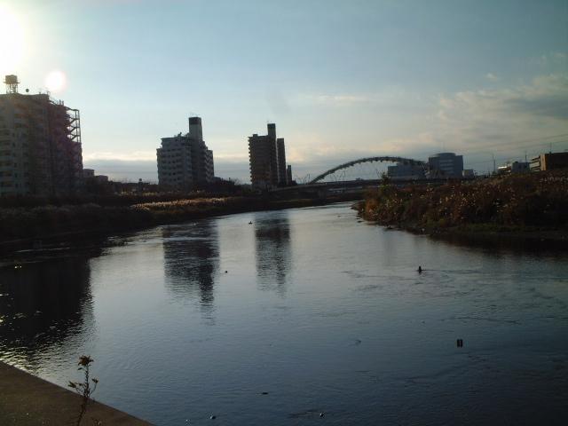 3:鶴見川の岸辺から西側を臨む。