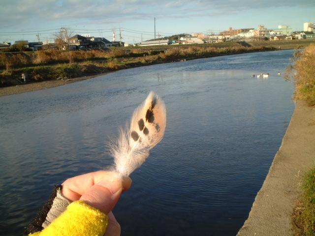6:オナガガモのメスの羽根が落ちていた。
