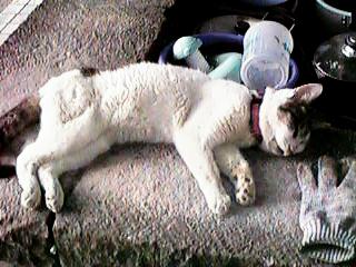 36:おでん屋のそばにいる首輪を付けた野良猫。